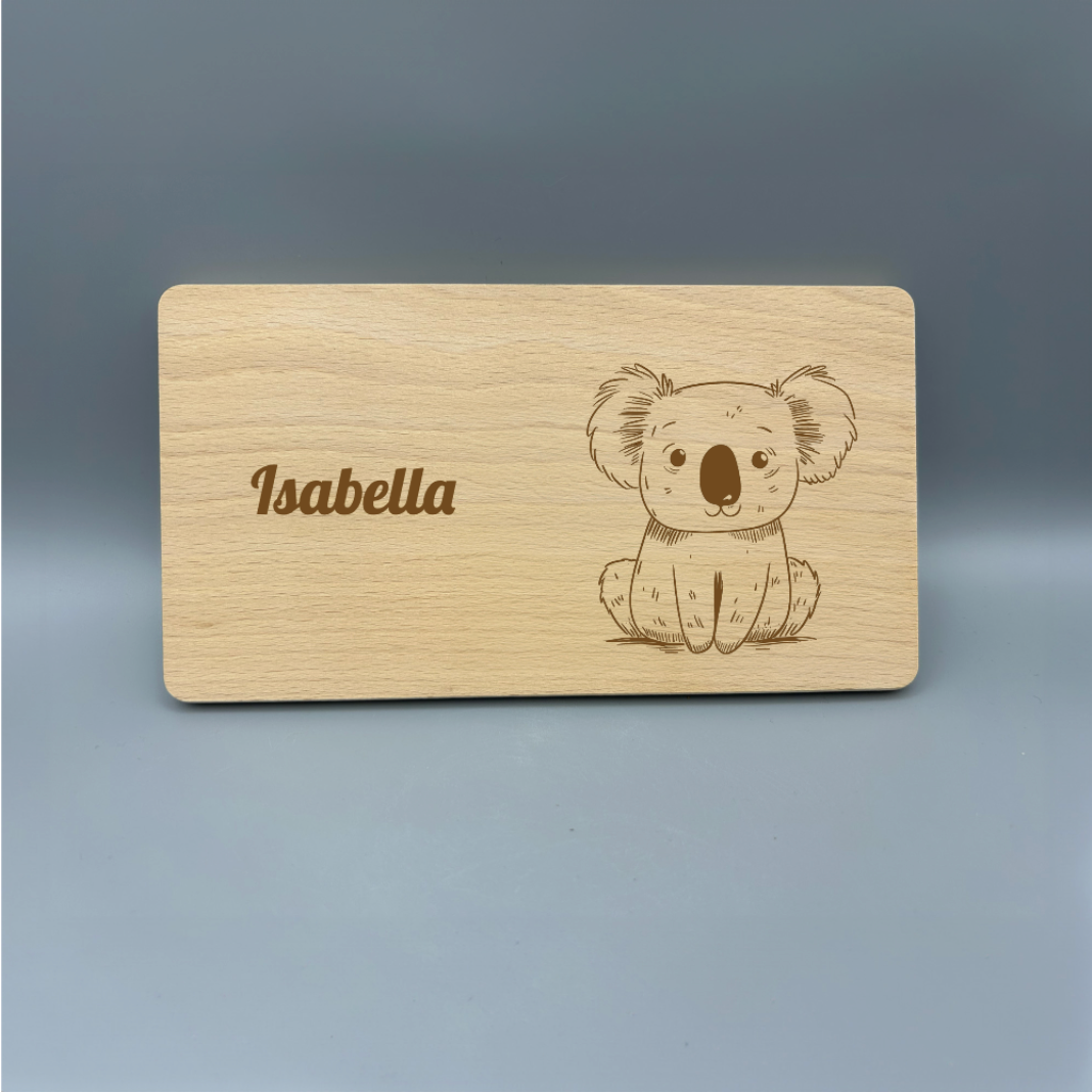 Mach es einzigartig: Jedes Brettchen kann mit einer Gravur personalisiert werden. Wähle ein süßes Tiermotiv und einen Namen, um das Frühstücksbrettchen in ein persönliches Geschenk zu verwandeln. Ideal für Kinder, die ihre eigene “Brotzeit-Tafel” lieben werden – und perfekt für Geburtstage, Einschulungen oder als Mitbringsel! 🐻🐰🦊